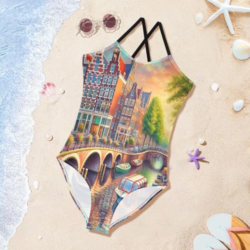 Ship Canal Trees Girls Swimsuit Bathing Suit Summer Beach Swimwear One Piece Swimsuits 4