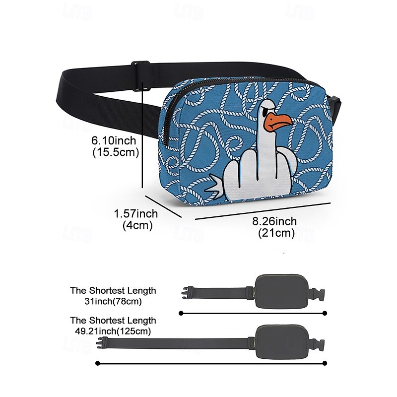 Men's Funny Duck Graphic Crossbody Fanny Pack – Adjustable Waterproof Belt Bag for Travel, Casual and Outdoor Activities 11