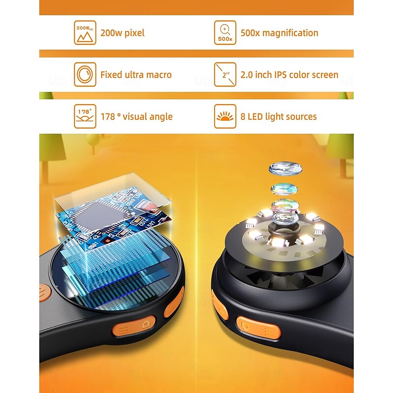 $59.99 - Digital Microscope Handheld 2.0 inch IPS Color Screen,Portable Digital Magnifying Glass 500x,Marco Microscope for Kids,Built-in 8LED Lights,USB Compatible with PC Windows, Mac OS 2025. Shop for cheap Tool Accessories online? Buy at lightinthebox.com on sale today!