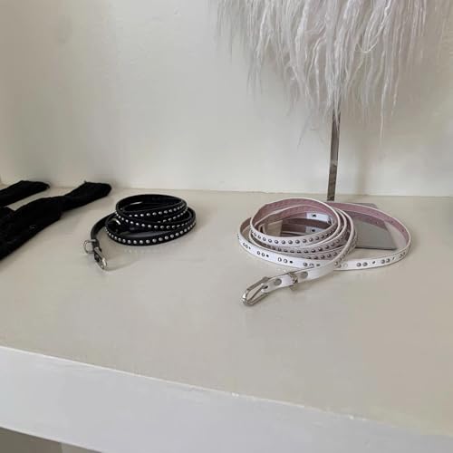 Y2K Punk Rivet Leather Double Thin Belt Women Men PU Black White Waist Strap Trendy Waistband Jeans Skirt Decoration 5