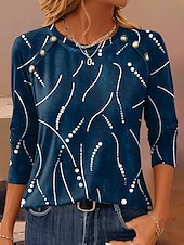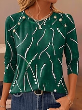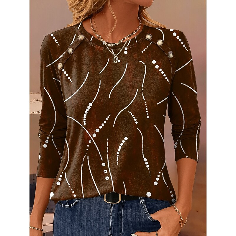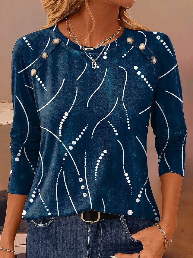 More information about Women's T Shirt Graphic Geometric Vintage Casual Long Sleeve Crew Neck Regular Tops Daily Buttons Print Blue Purple Brown Green Spring Fall Winter