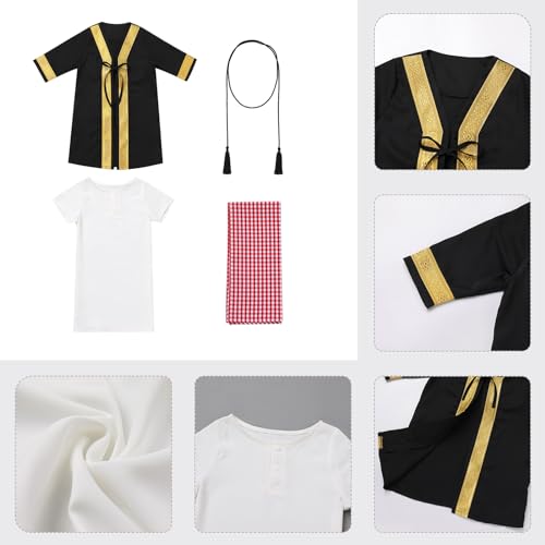 • Muslim Clothes Design: The long sleeve V neck kaftan embellished with golden embroidered trimming at front and cuffs, and a self-tied bowknot at front, which is noble and first-class. The red and white plaid print had scarf can offer a full coverage to your head and neck and protect them from so much sunshine, wind and sand. Plus with a black rope to keep the head scarf desert wrap keffiyeh, which is easy to hold and carry. After wearing them, your boy will receive much compliments at crowd.