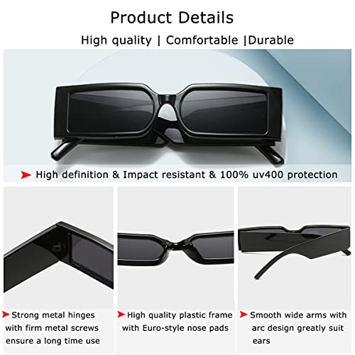 • RETRO 90S SMALL RECTANGLE SUNGLASSES -- These rectangle sunglasses, based on 90s popular style, continue on a slender narrow frame and wide arms to make charming retro looks for followers of trends. Fashion colors come with rare vintage green, vivid orange, and must-have classic retro black, simple white. No matter what colors you choose, it will bring surprise for you.