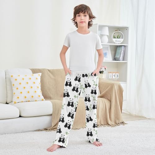 ZZXXB Black and White Panda Print Boys Long Pants Soft Trousers Elastic Waist Kids Lounge Bottoms with Pockets S-XL 4