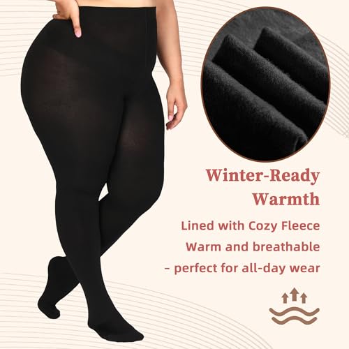 Plus Size Fleece Lined Tights, Thermal Winter Pantyhose for Women Multiple Colors, Sizes Up to 6XL 4
