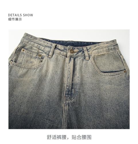 More information about Jeans Pants Trousers Denim Gradient Blue Micro Flared Men's Classic Loose Washed Tie Dye Wide Leg High Street