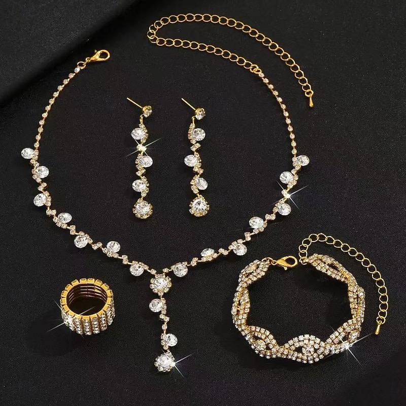 More information about Bridal Jewelry Sets One-piece Suit Alloy Rings 1 Bracelet Earrings Necklace Women's Stylish Luxury Cute Joy Jewelry Set For Party Evening Wear
