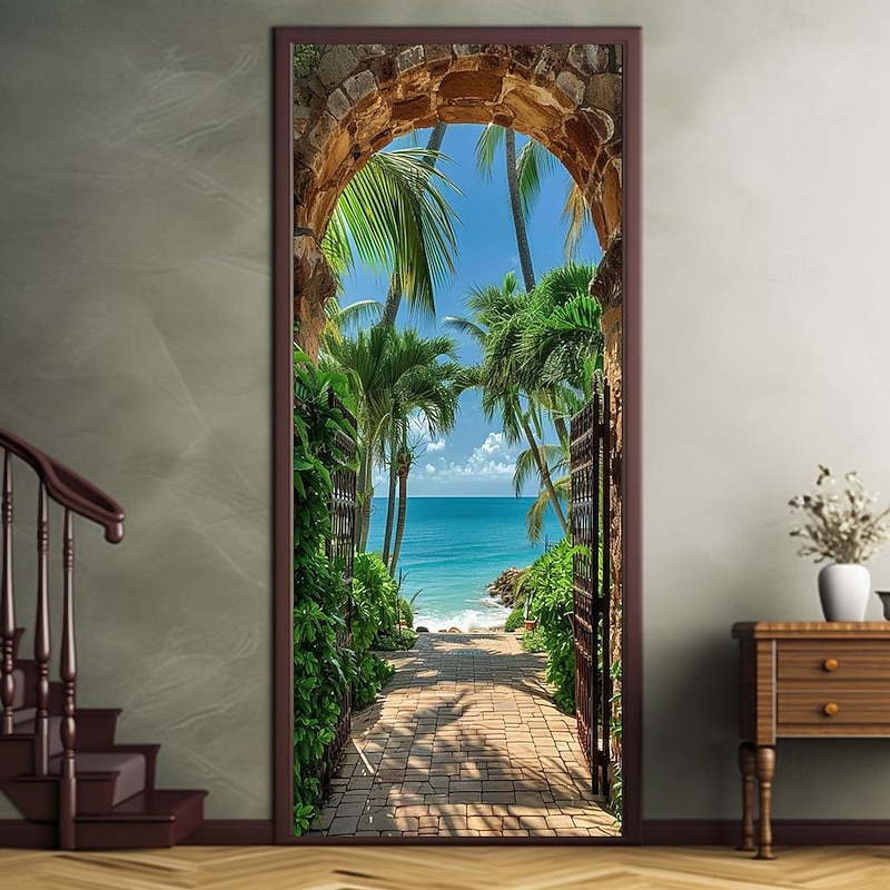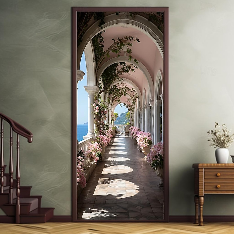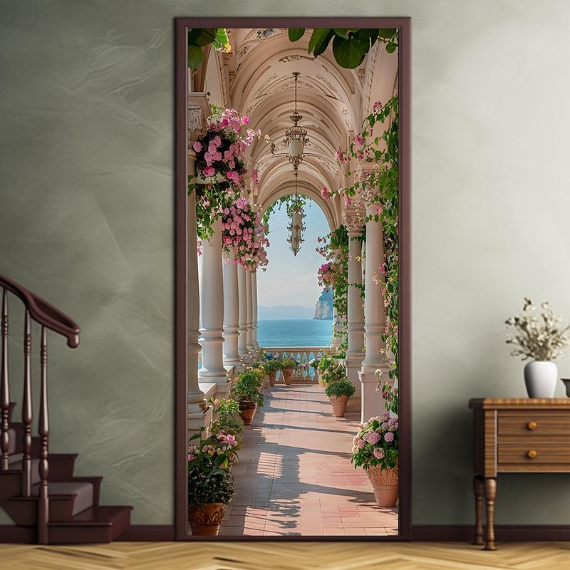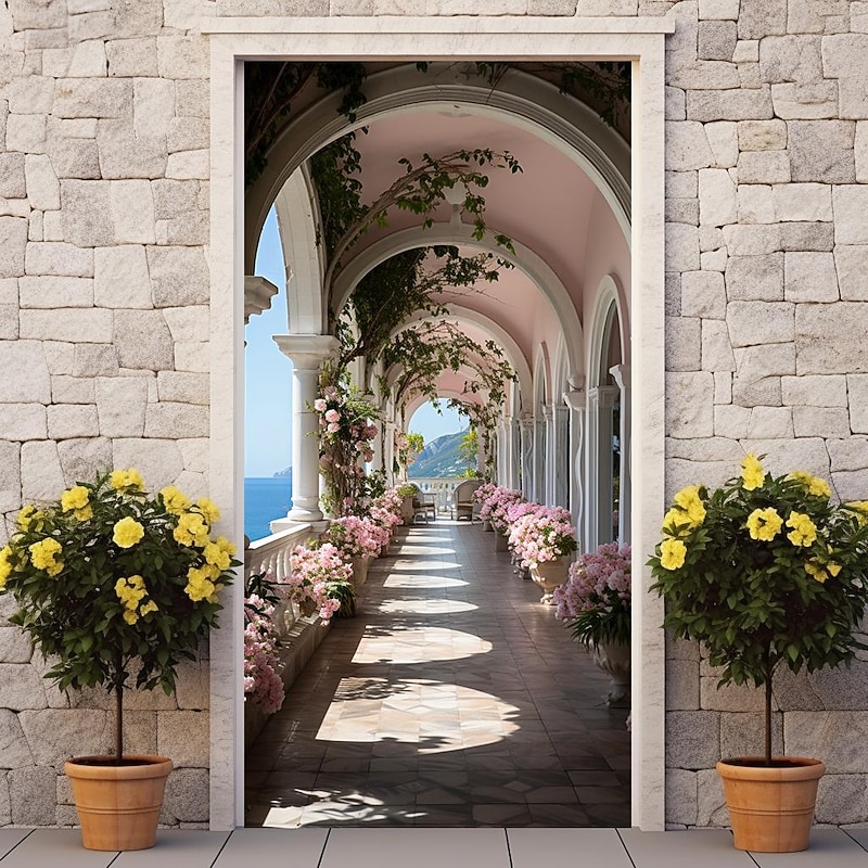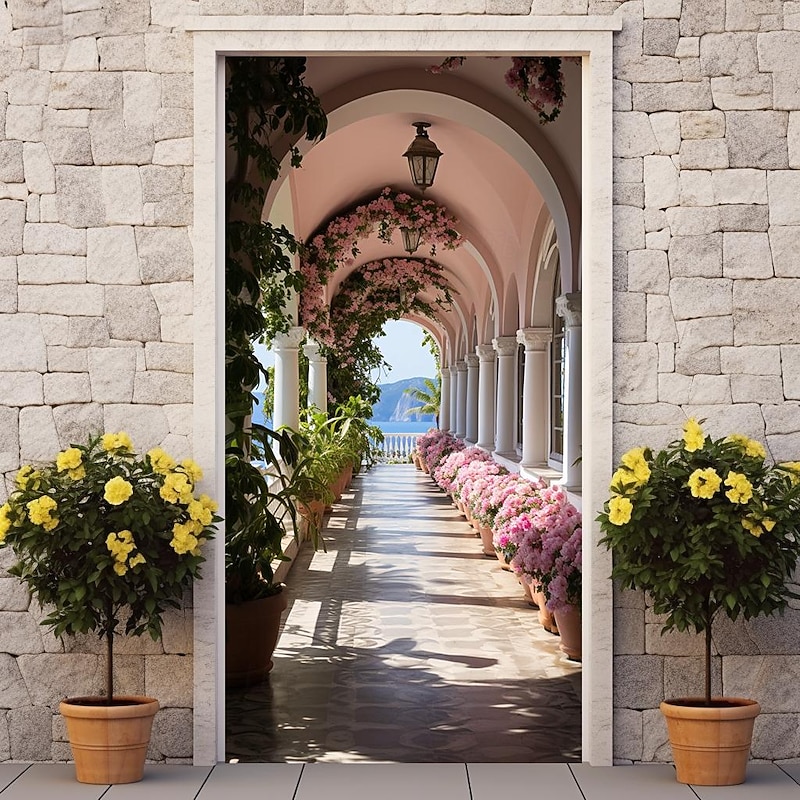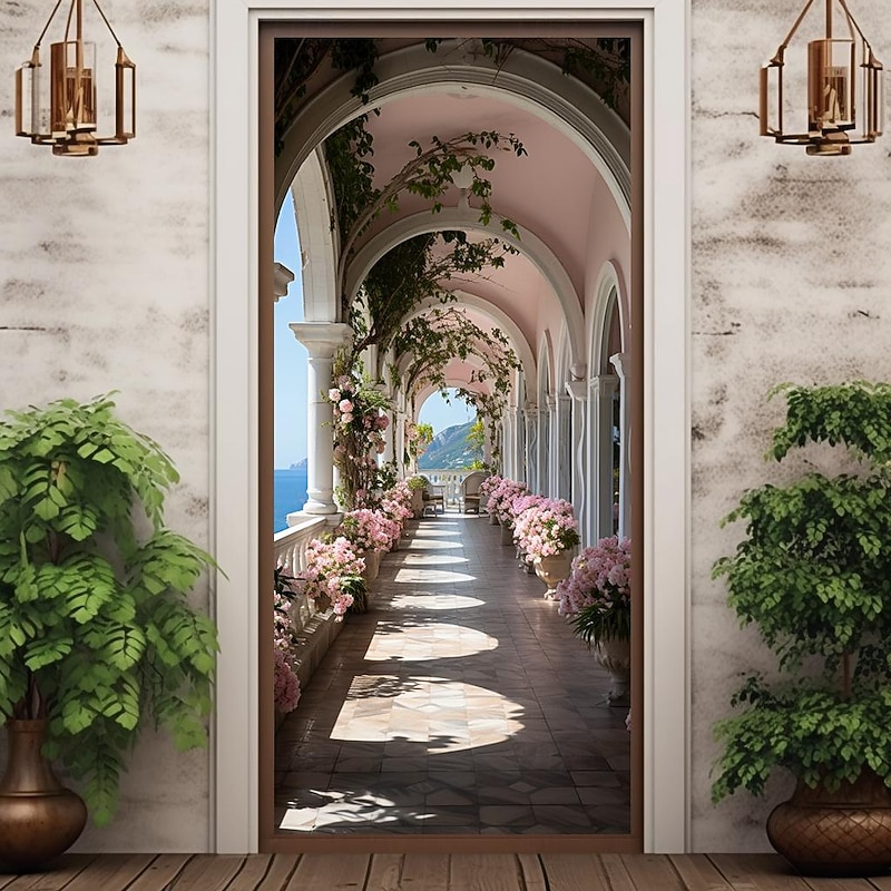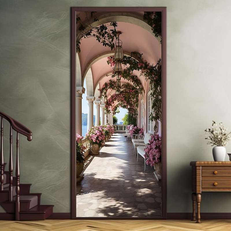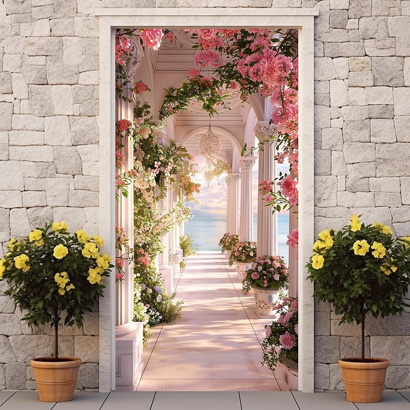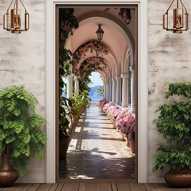 More information about Valentine's Day Garden Arch Floral Door Covers Mural Decor Door Tapestry Door Curtain Decoration Backdrop Door Banner Removable for Front Door Indoor Outdoor Home Room Decoration Farmhouse Decor