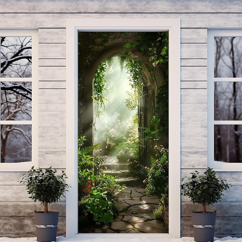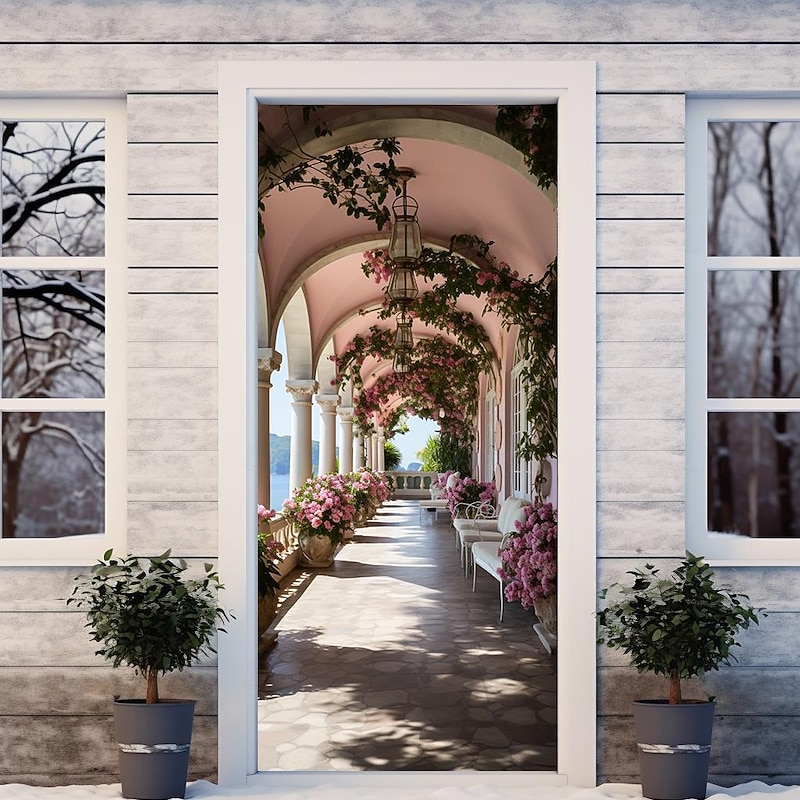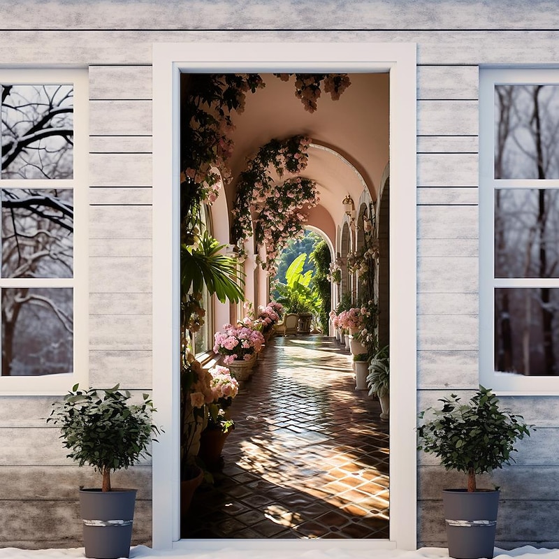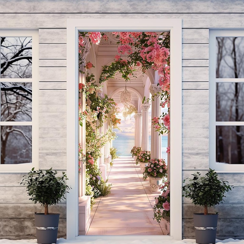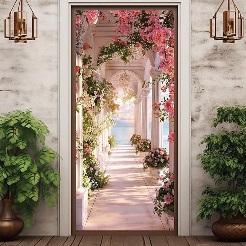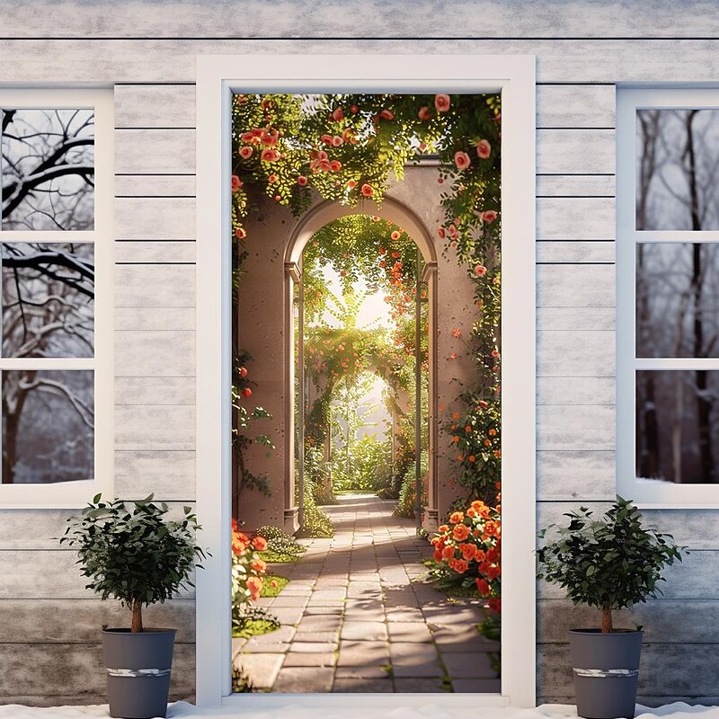 HOT ! Valentine's Day Garden Arch Floral Door Covers Mural Decor Door Tapestry Door Curtain Decoration Backdrop Door Banner Removable for Front Door Indoor Outdoor Home Room Decoration Farmhouse Decor