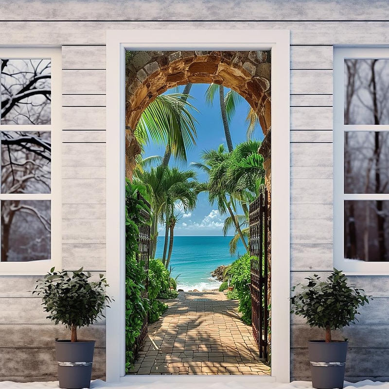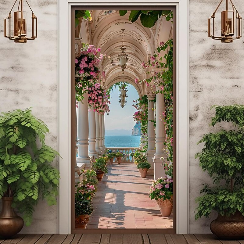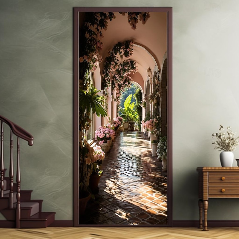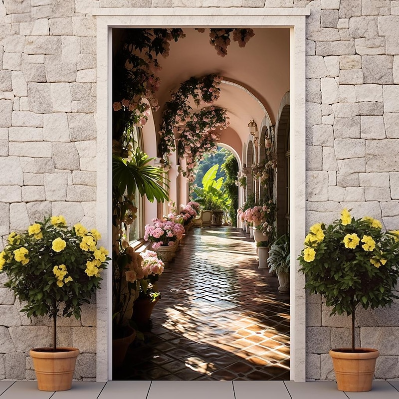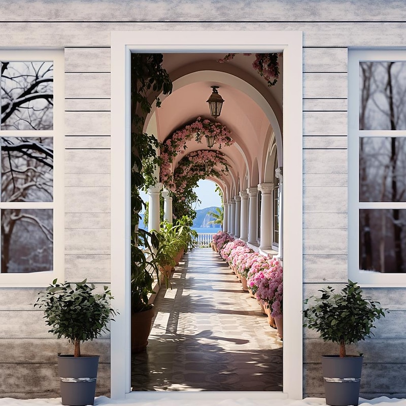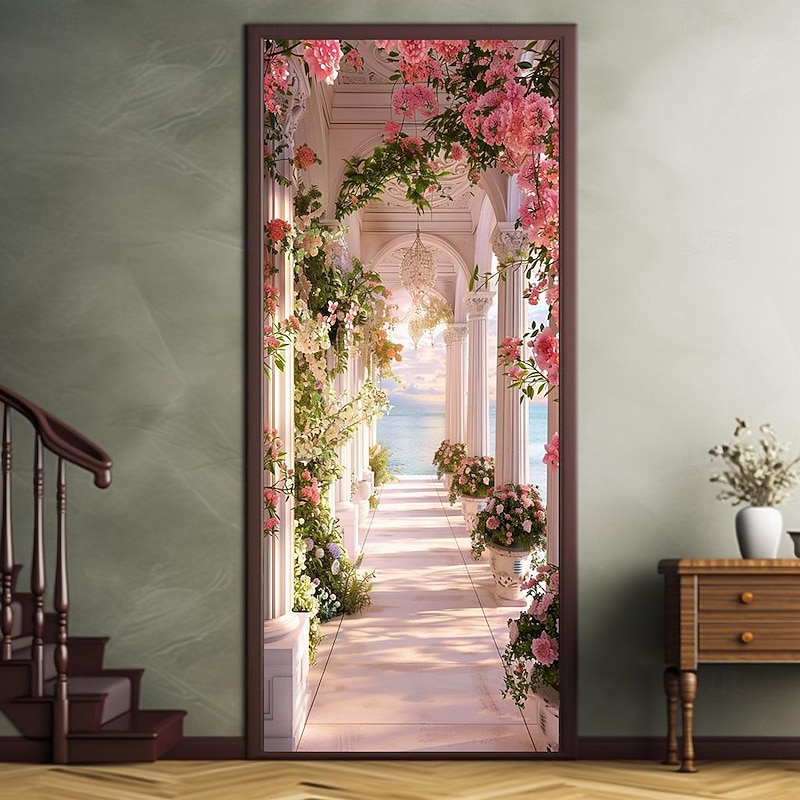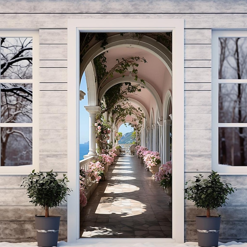 HOT ! Valentine's Day Garden Arch Floral Door Covers Mural Decor Door Tapestry Door Curtain Decoration Backdrop Door Banner Removable for Front Door Indoor Outdoor Home Room Decoration Farmhouse Decor