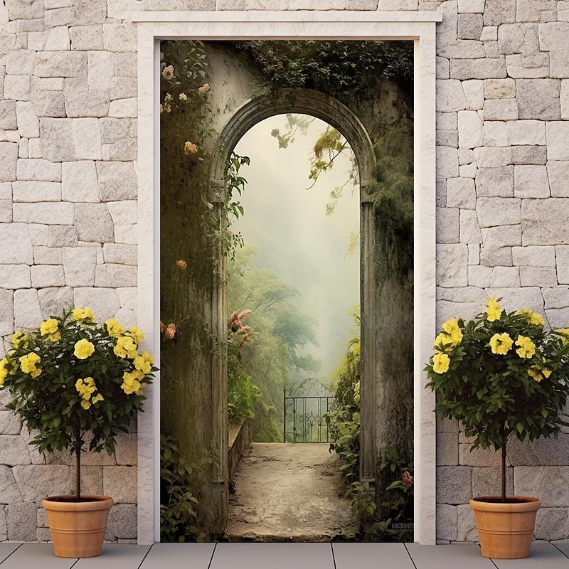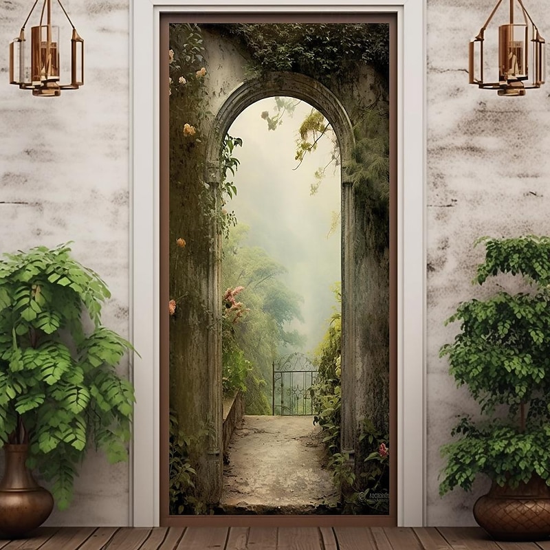 Valentine's Day Garden Arch Floral Door Covers Mural Decor Door Tapestry Door Curtain Decoration Backdrop Door Banner Removable for Front Door Indoor Outdoor Home Room Decoration Farmhouse Decor 52