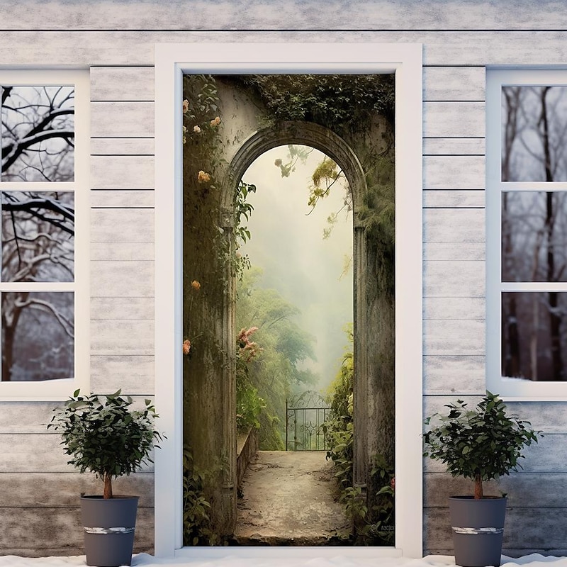Valentine's Day Garden Arch Floral Door Covers Mural Decor Door Tapestry Door Curtain Decoration Backdrop Door Banner Removable for Front Door Indoor Outdoor Home Room Decoration Farmhouse Decor 31