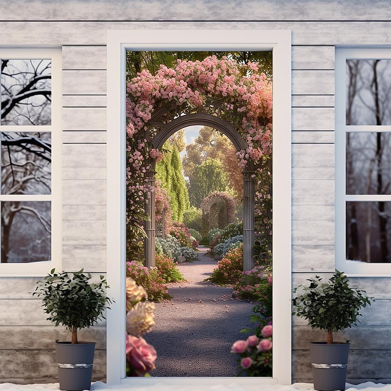 Valentine's Day Garden Arch Floral Door Covers Mural Decor Door Tapestry Door Curtain Decoration Backdrop Door Banner Removable for Front Door Indoor Outdoor Home Room Decoration Farmhouse Decor 4