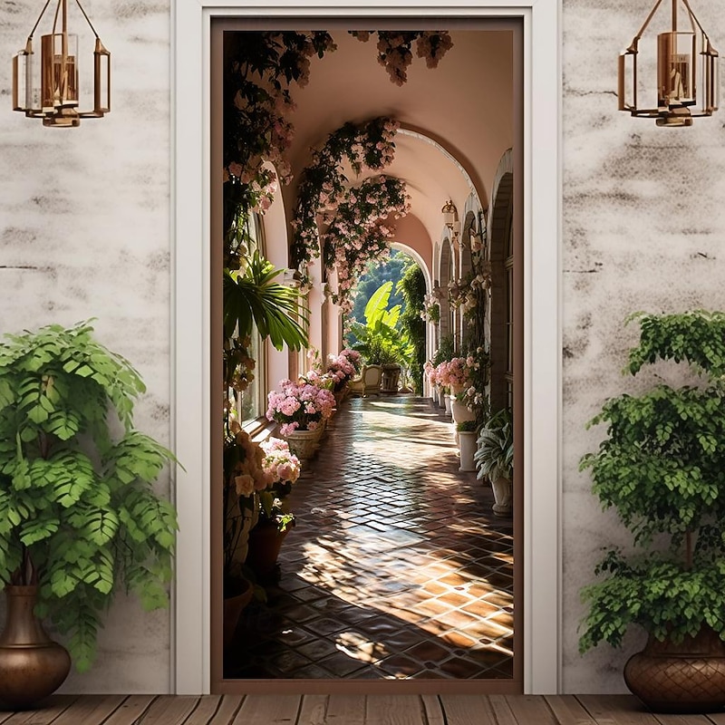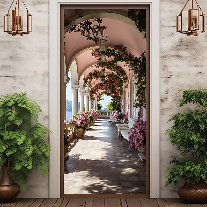 Valentine's Day Garden Arch Floral Door Covers Mural Decor Door Tapestry Door Curtain Decoration Backdrop Door Banner Removable for Front Door Indoor Outdoor Home Room Decoration Farmhouse Decor 30