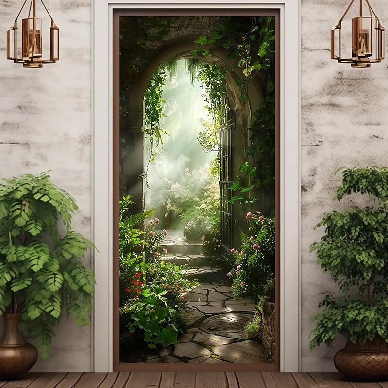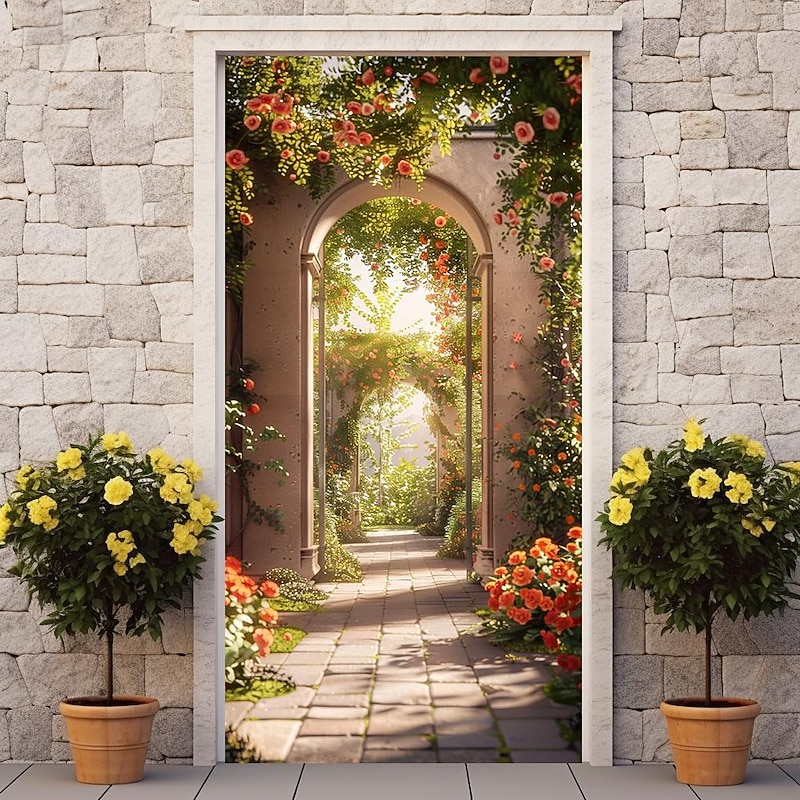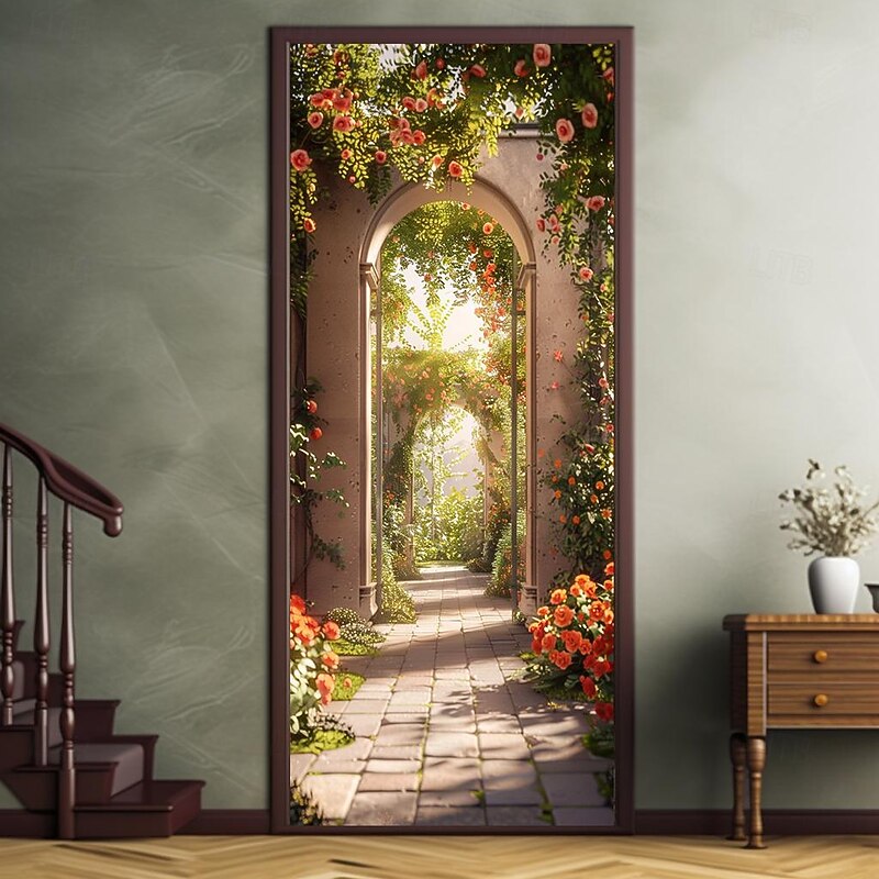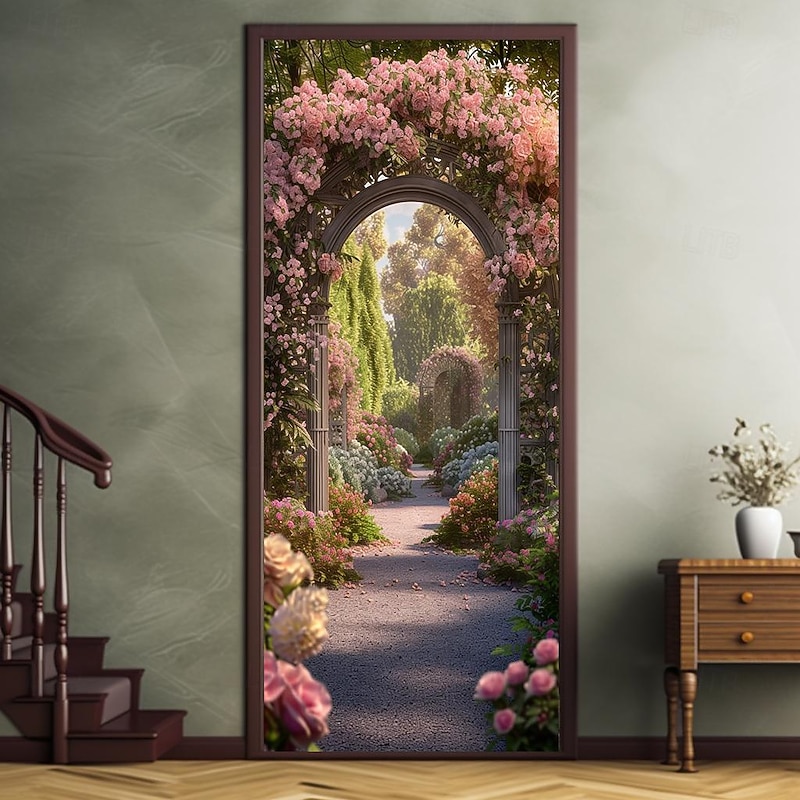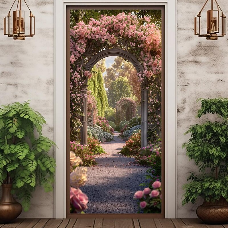 Valentine's Day Garden Arch Floral Door Covers Mural Decor Door Tapestry Door Curtain Decoration Backdrop Door Banner Removable for Front Door Indoor Outdoor Home Room Decoration Farmhouse Decor 1