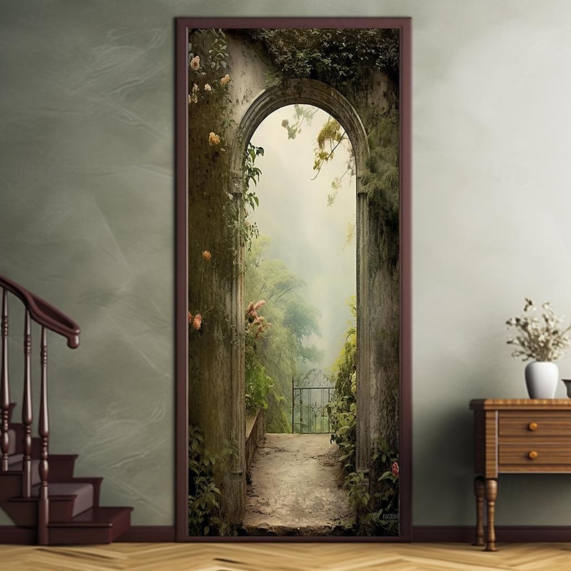 Valentine's Day Garden Arch Floral Door Covers Mural Decor Door Tapestry Door Curtain Decoration Backdrop Door Banner Removable for Front Door Indoor Outdoor Home Room Decoration Farmhouse Decor 32
