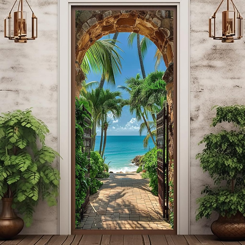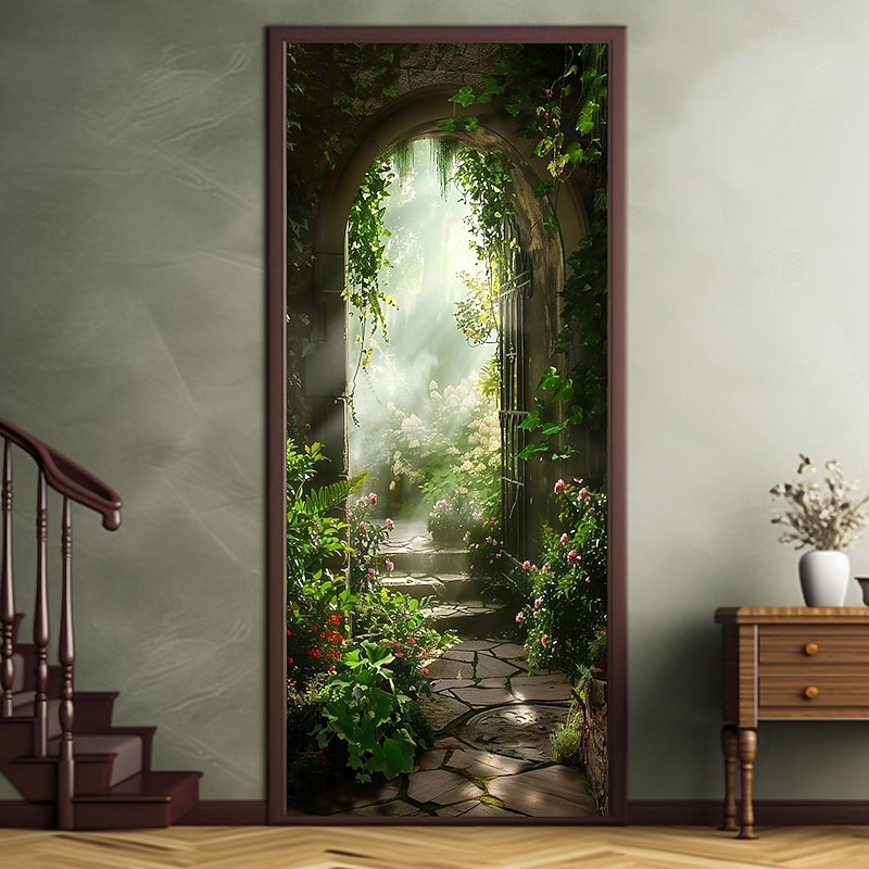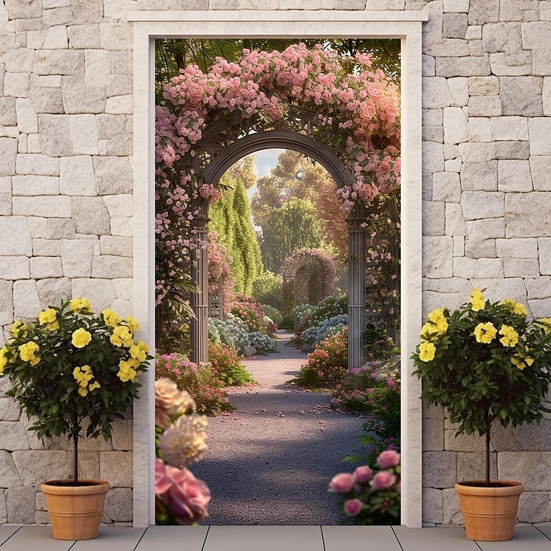 Valentine's Day Garden Arch Floral Door Covers Mural Decor Door Tapestry Door Curtain Decoration Backdrop Door Banner Removable for Front Door Indoor Outdoor Home Room Decoration Farmhouse Decor 9