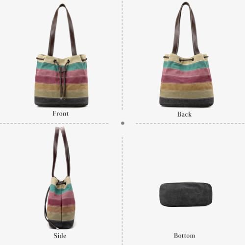 • ★【High-Quality Canvas Material】The ladies handbag is made of high quality and durable washed cotton canvas, with PU leather shoulder strap and inner polyester material, durable enough to last for years and will never go out of style. Humanized anti-theft design of beam mouth. The drawstring design and the long shoulder strap make the tote bag simpler and more convenient. Multiple pockets can enlarge the capacity of this canvas handbag.