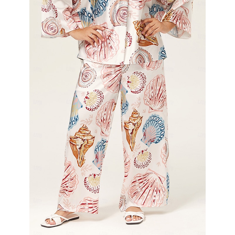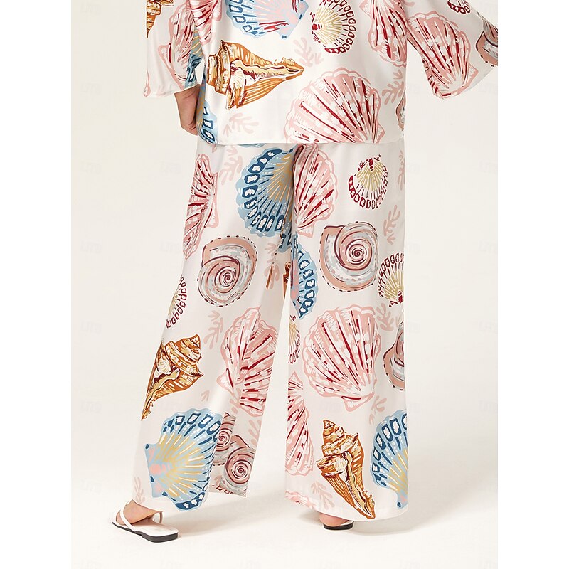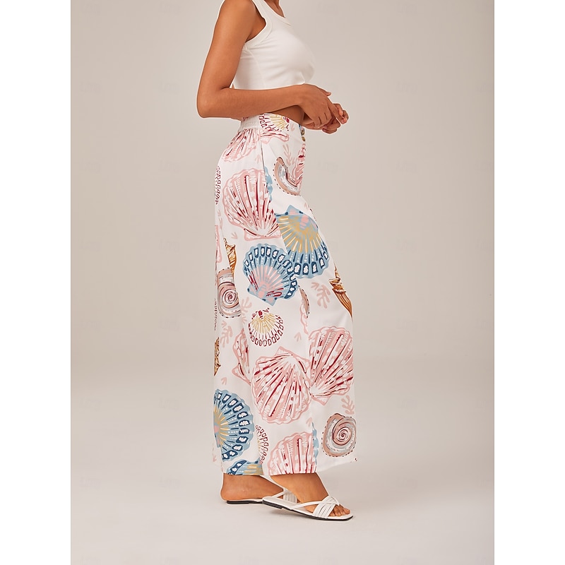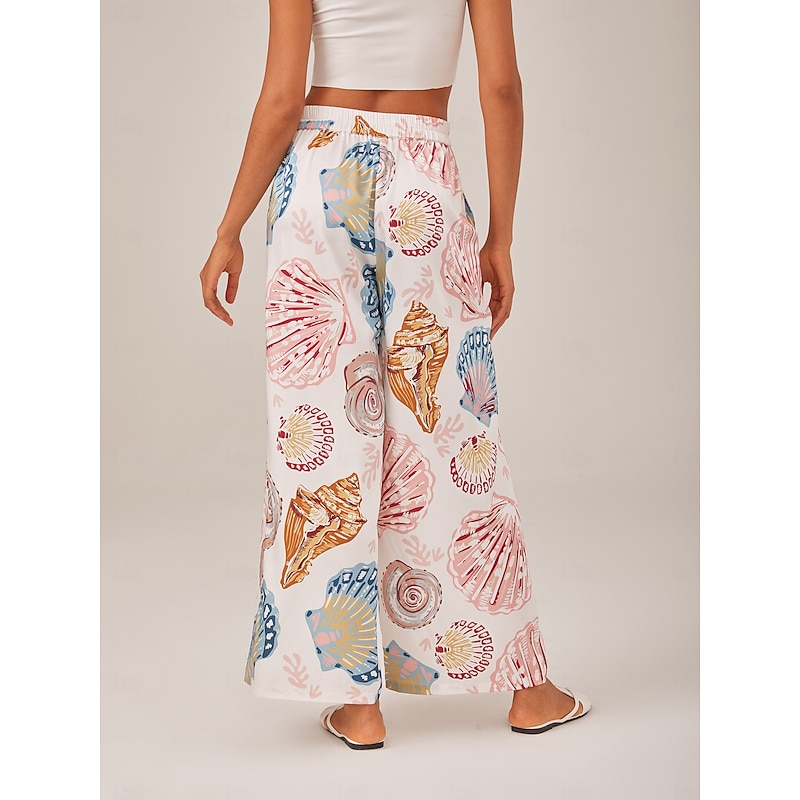 HOT ! Shell Print Elastic Waist Wide Leg Pants