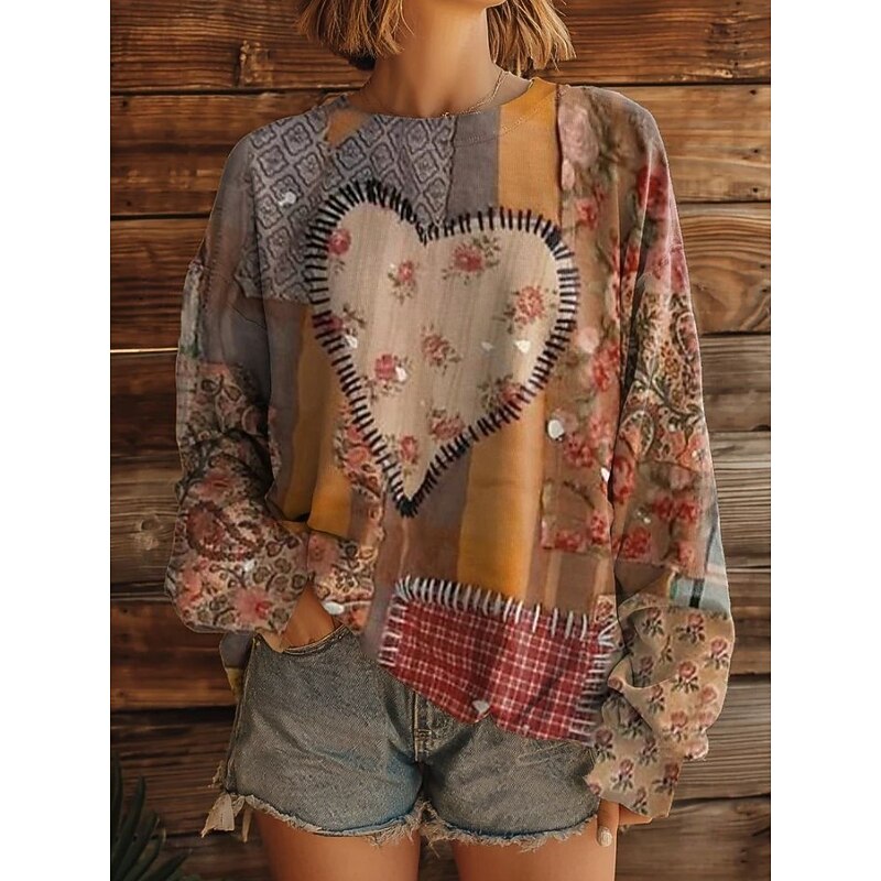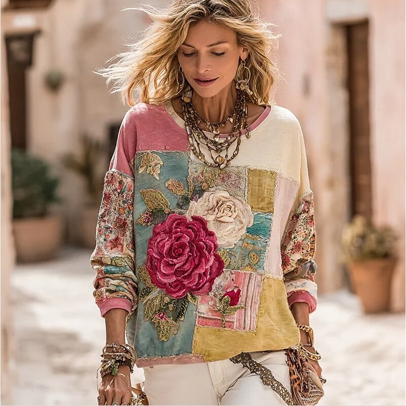 HOT ! Women's 3D Print Vintage Boho Hoodie Patchwork Hoodie Sweatshirt Floral Pullover Sweatshirt Warm Active Vintage Long Sleeve Tops Street Dailywear Patchwork Yellow Red Blue Orange Spring Fall Winter