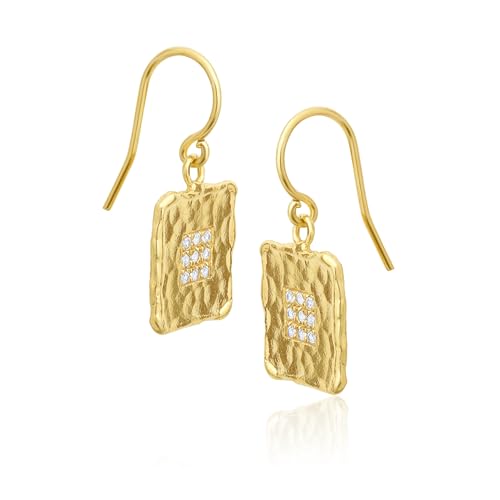 More information about JEAN RACHEL JEWELRY 14K Gold Plated Sterling Silver Earrings for Women - Square with Cubic Zirconia Vintage Design - Hypoallergenic, Lead & Nickel Free - Artisan Handcrafted Statement Earrings