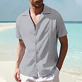 More information about Men's Shirt Linen Shirt Cotton Linen Shirt Guayabera Shirt Summer Shirt Beach Shirt Plain Vacation Casual Black White Navy Blue Blue Short Sleeve Camp Collar Summer Clothing Apparel