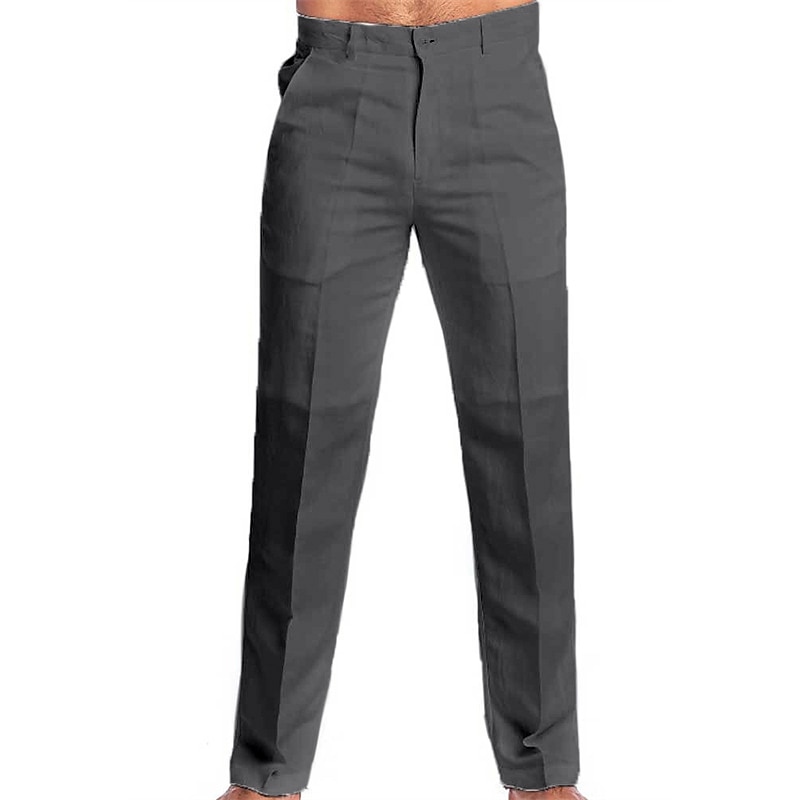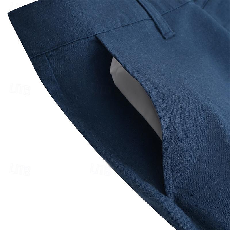 Men's Linen Pants Trousers Dress Pants Summer Pants Beach Pants Straight Leg Plain Comfort Outdoor Casual Daily Streetwear Stylish Black White 23