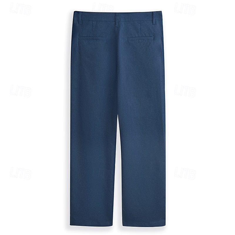 Men's Linen Pants Trousers Dress Pants Summer Pants Beach Pants Straight Leg Plain Comfort Outdoor Casual Daily Streetwear Stylish Black White 24