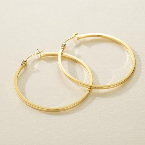 HOT ! 14K Gold Hoop Earrings for Women Large Gold Hoop Earrings Round Square-edge 14K Hoops Earring Womens Earring 40MM