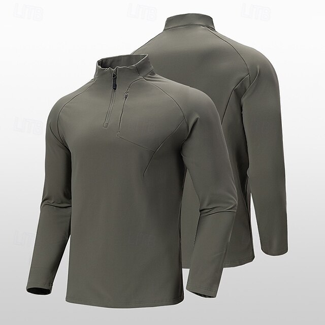 More information about Men's Hiking Shirt Hiking top Zipped Hoodie Sweatshirt Long Sleeve Stand Collar Top Outdoor Lightweight Sweat wicking Polyester Black Army Green Brown Workout Running