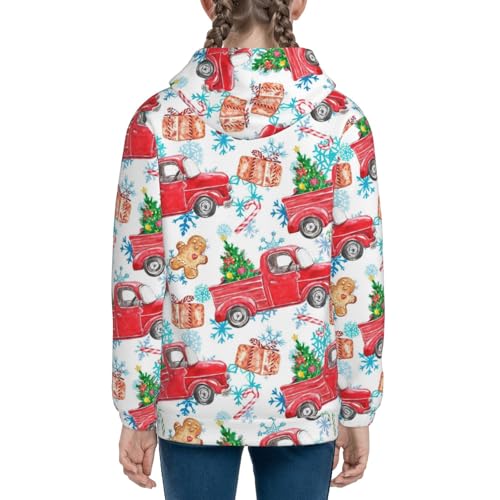 Watercolor Red Truck And Fir Tree Kids Pullover Hoodies Boys Zip Up Sweatshirts Girls Athletic Clothes with Pocket 5