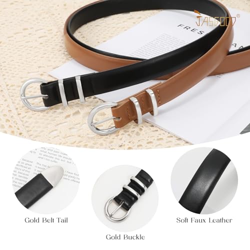 JASGOOD 2 Pack Women's Leather Belts with Gold Buckle Fashion Leather Waist Belt Elegant Ladies Belts for Jeans Dress 2