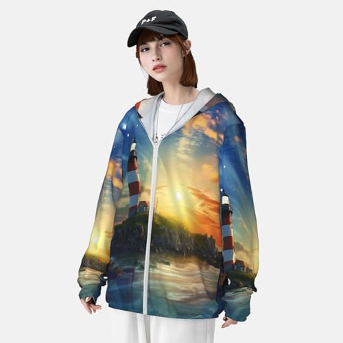 Lighthouse Sun Protection Hoodie Jacket UPF 50+ Full Zip Long Sleeve Sun Shirts with Pockets Rash Guard 1