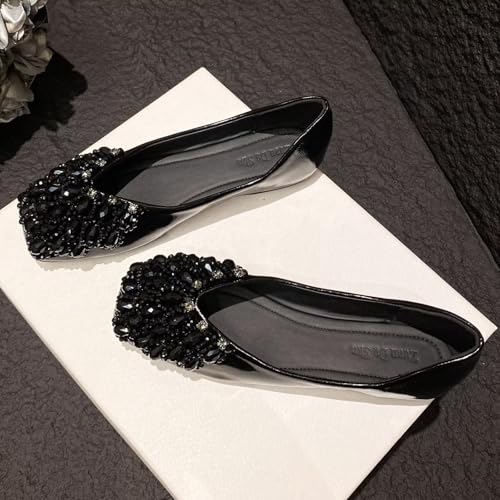 • ✅[FASHION TRENDS FOLLOW]: Classic fashion flat shoes for women, the flats with rhinestones could pattern with your dress, blouse, jeans, skirts and so on.