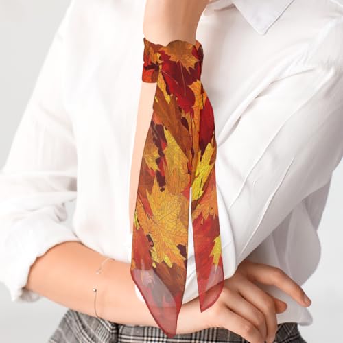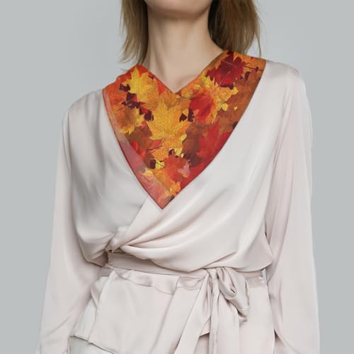 HOT ! Autumn Leaves Fall Thanksgiving Square Silk Scarf for Women Fashion Printed Satin Neck Silk Satin Bandana Lightweight Neckerchief Hair Wrap Scarves 23.6" x 23.6"