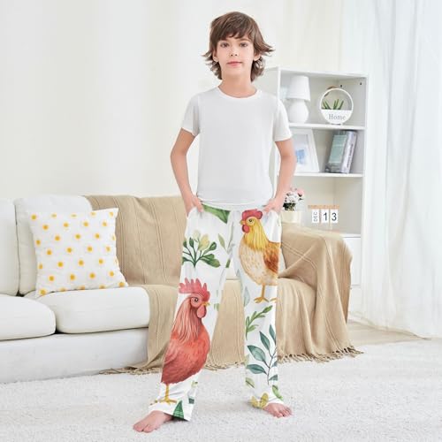 Watercolor Rooster Floral Boys Long Pants Soft Trousers Elastic Waist Kids Lounge Bottoms with Pockets S-XL 4