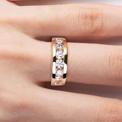 Idocare Moissanite Wedding Band D Color VVS1 Round Brilliant Cut 14K Yellow Gold Plated 925 Sterling Silver Eternity Band Rings for Women and Men 5