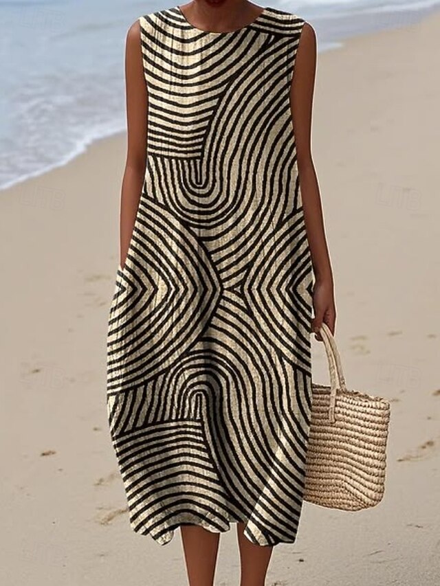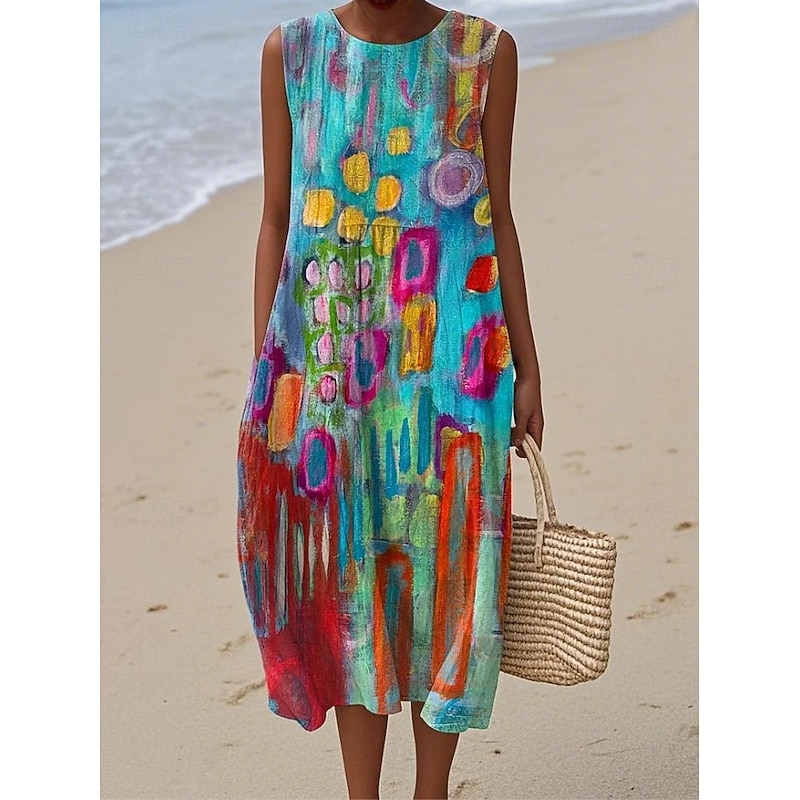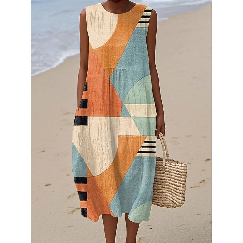 More information about Women's Midi Dress Sundress Vacation Casual Boho Party Beach Loose Fit Geometric Sleeveless Crewneck Pink Red Blue Orange Summer Spring