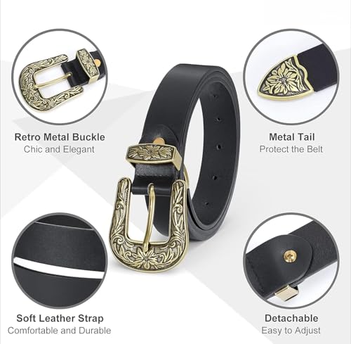 Women's Western Genuine Leather Belt Vintage Style Plus Size for Jeans 5
