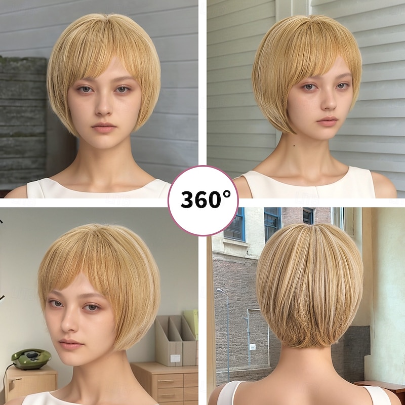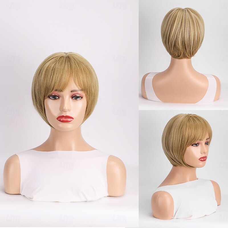 $23.99 - Synthetic Wig Straight Natural Straight Layered Haircut Neat Bang Machine Made Wig 14 inch A1 Synthetic Hair Women's Cool Classic Comfortable Blonde 2025. Shop for cheap Synthetic Trendy Wigs online? Buy at lightinthebox.com on sale today!