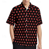 More information about Men's Shirt Summer Shirt Casual Shirt Beach Shirt Button Up Shirt Black Red Blue Short Sleeve Polka Dot Lapel Vacation Hawaiian Clothing Apparel Polyester Fashion Casual Comfortable