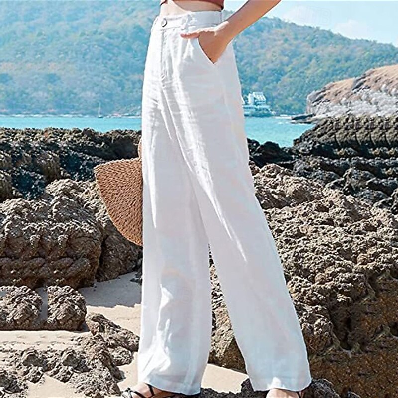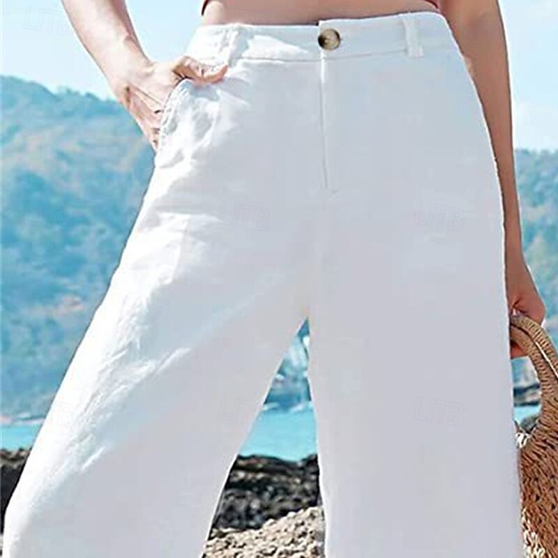 More information about Women's Cotton Linen Pants Palazzo Pants Fashion Streetwear Comfort Full Length High Waist Plain Pocket Comfy Outdoor Comfortable Street Daily Wear Going out Black White Cyan Summer Regular Fit