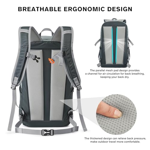 HOT ! G4Free 30L Lightweight Hiking Backpack for Men Women, Airline Approved Day Pack for Travel, Bussiness Work, Easy Hike(Grey)