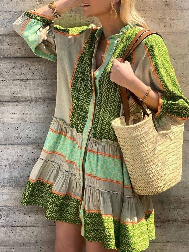 More information about Women's Mini Dress Petite Dress Casual Dress Swing Dress Boho Dress Casual Daily Regular Fit Geometric Long Sleeve Turtleneck Green Summer Spring Fall
