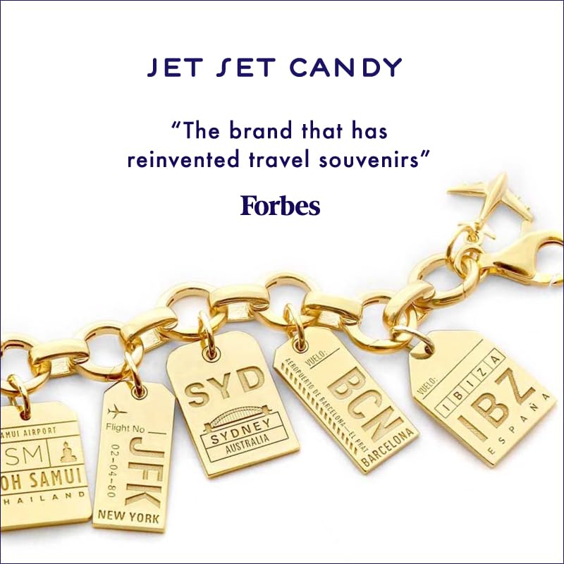 • Jet Set Candy's travel-inspired jewelry captures the spirit of favorite destinations and far-flung places. Launched in October 2014 and based in New York City, we offer charms for many locations so whether you’re an avid traveler or simply have hometown pride, the possibilities are endless...and so is the fun.