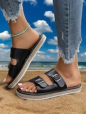 More information about Black Faux Leather Platform Sandals with Buckle Strap for Women – Casual, Comfortable, and Trendy Summer Footwear