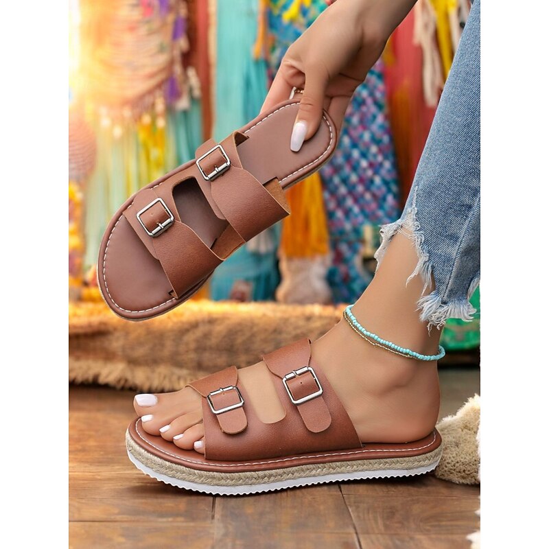 Highlights - Made with high-quality PU upper materials - Synthetic leather lining for added comfort - Stylish buckle embellishment - Classic round toe shape - Durable rubber outsole - Inspired by the 2024 Boho Beach trends