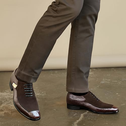 Men's Genuine Leather Textured Formal Retro Loafers Classic Pointed Lace-Up Decoration Non-Slip Slip-On Business Wedding Tuxedo Wedding Shoes 6