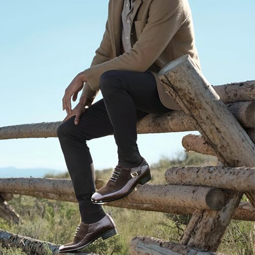 Men's Genuine Leather Textured Formal Retro Loafers Classic Pointed Lace-Up Decoration Non-Slip Slip-On Business Wedding Tuxedo Wedding Shoes 7