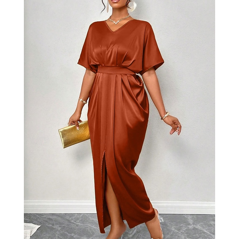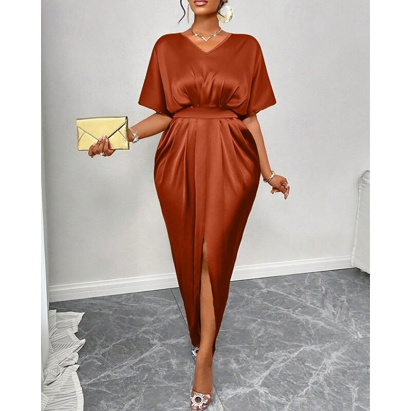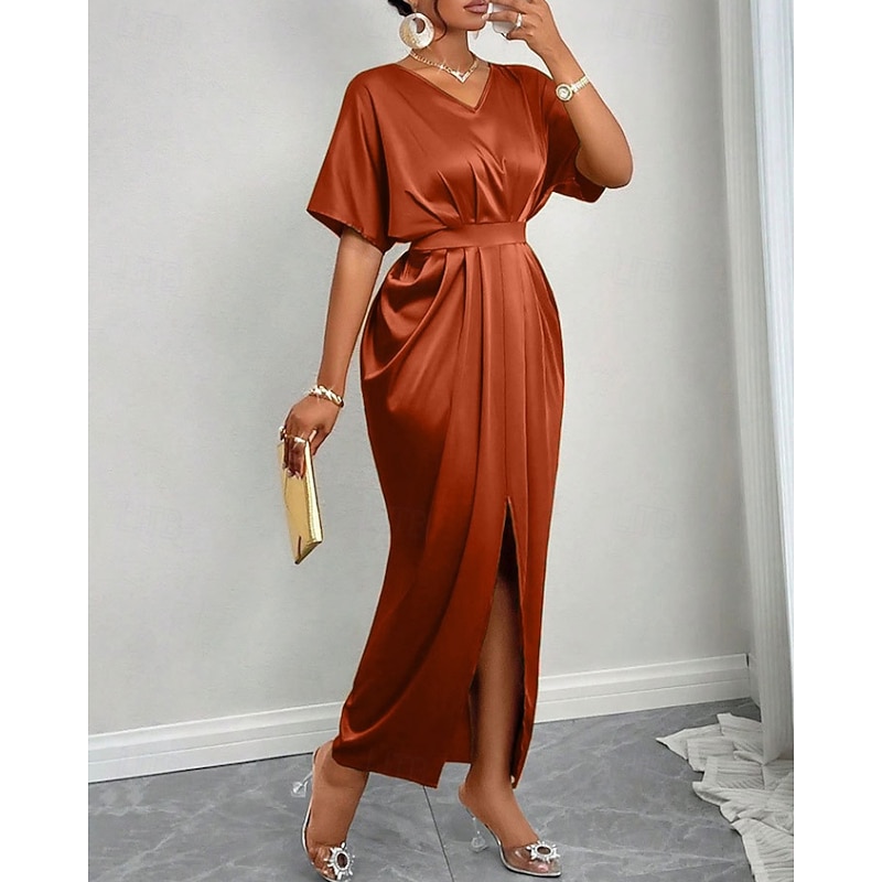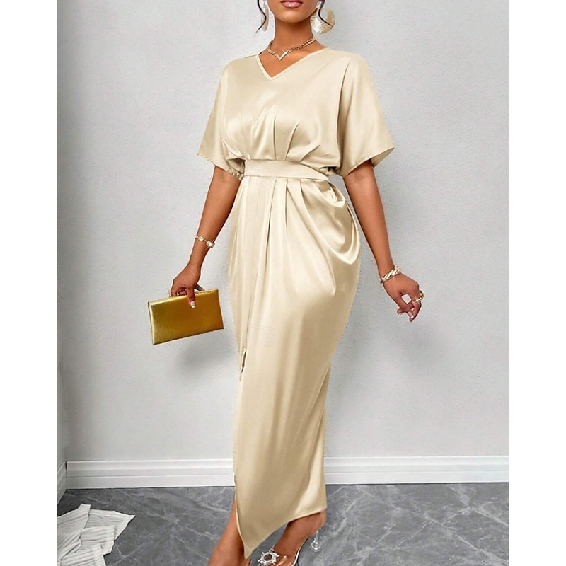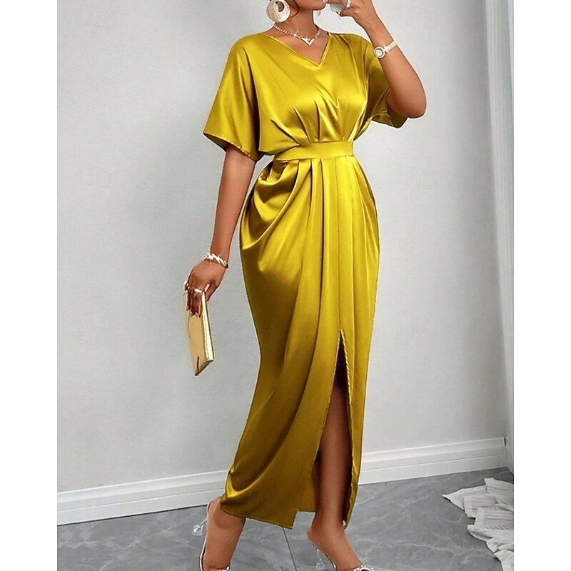 HOT ! Women's Long Dress Maxi Dress Party Dress Cocktail Dress Satin Dress Elegant Modern Party Evening Party Regular Fit Plain Short Sleeve V Neck Black Yellow Royal Blue Dark Green Fall Winter